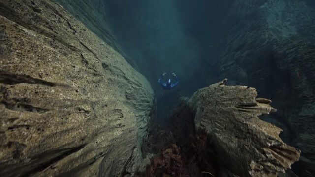 暗く狭き水中洞窟を進む、スキューバダイバー視点の映像が恐ろしい