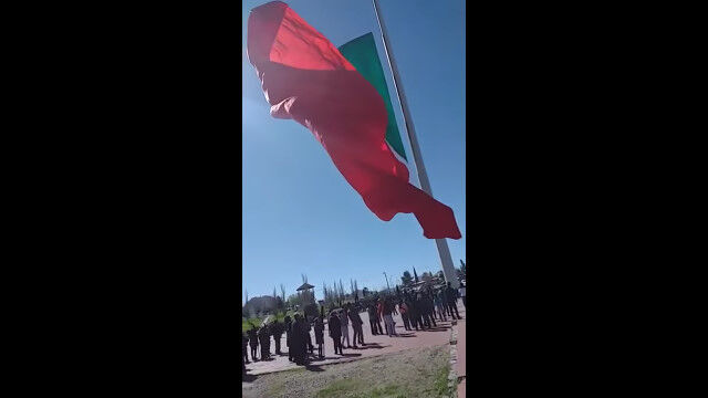 高さ100メートルの旗竿に掲げられた旗は、高さ14.3メートル、幅25メートルという巨大なもの。