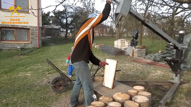 斧を振り下ろす先を固定してあるようなもので、その矛先にあわせて薪をあてがう方式。