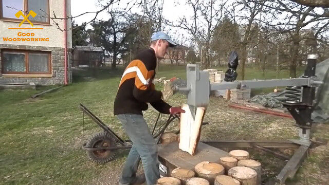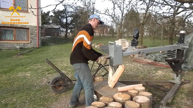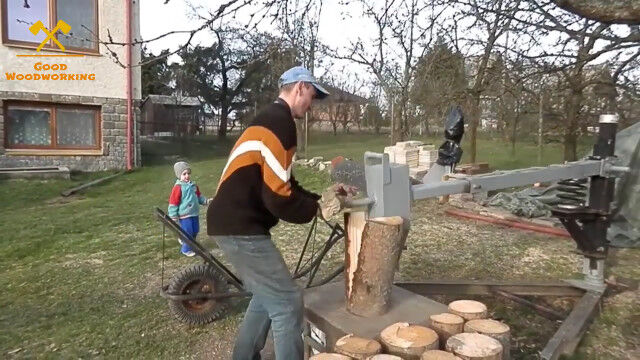 回転する円筒形の刃で薪を作るタイプのウッドカッター