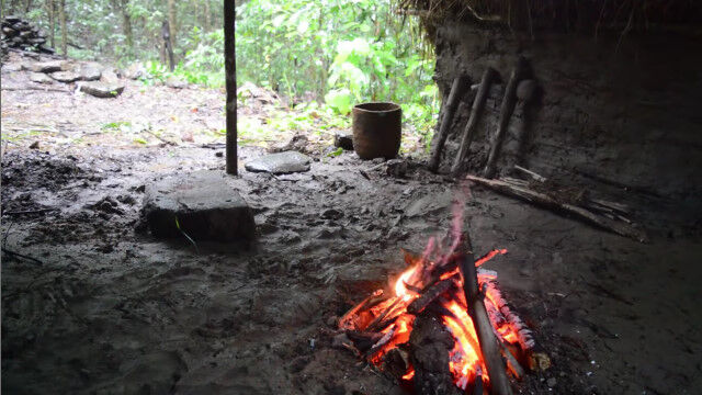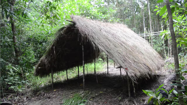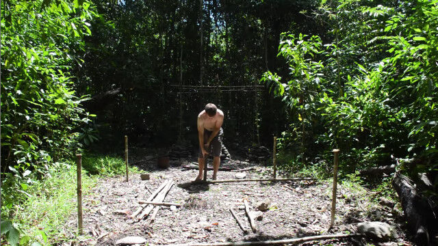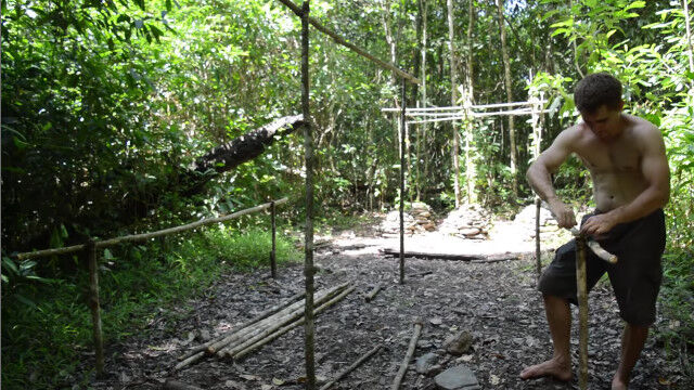 原始生活お兄さん、雨の日でも安心な作業小屋を建てる