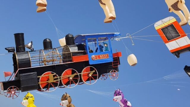 ドバイで行われた凧揚げのイベント「ドバイ・インターナショナル・カイトフェスティバル」に登場した、蒸気機関車の連凧が素晴らしい。