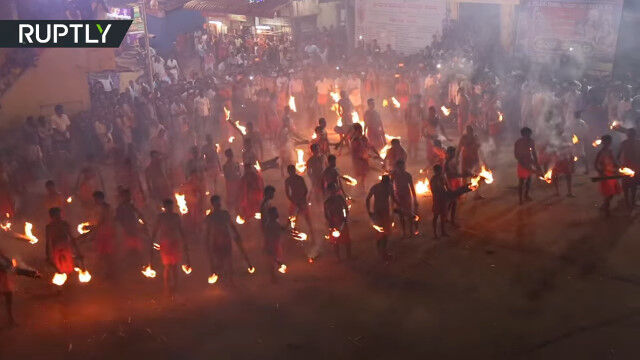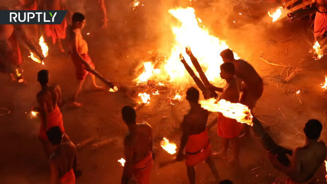 インド、マンガロールのケイティールにて、毎年4月に8日間行われるヒンドゥー教のお祭り「アグニ・ケリ」。
