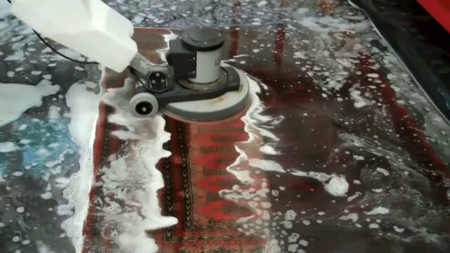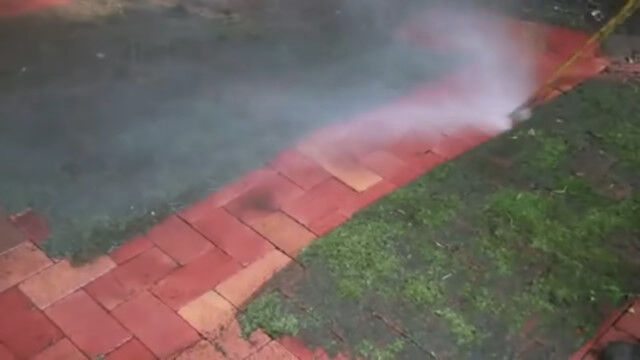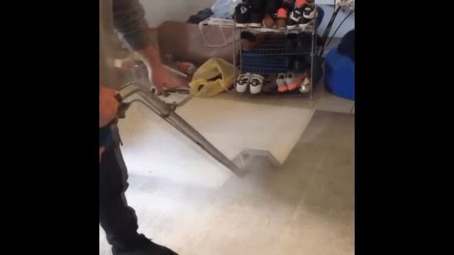 高圧洗浄機で壁の汚れを吹き飛ばし、スチームクリーナーで絨毯の汚れを落とす。