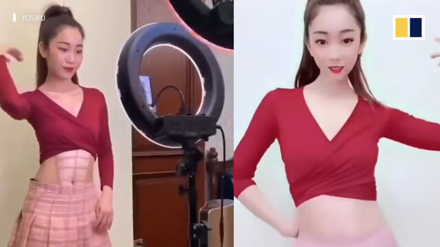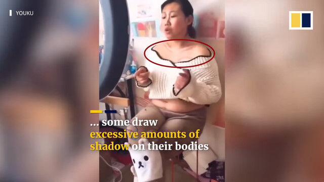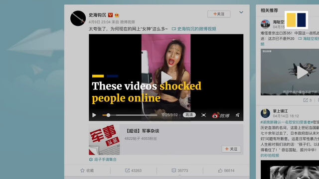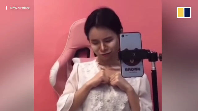 スマートフォンを使って映像を配信する中国の女性配信者たち。