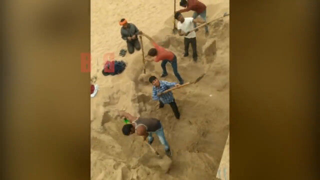 ショベルカーを持ち上げてる風のおっさんたちが楽しそう。