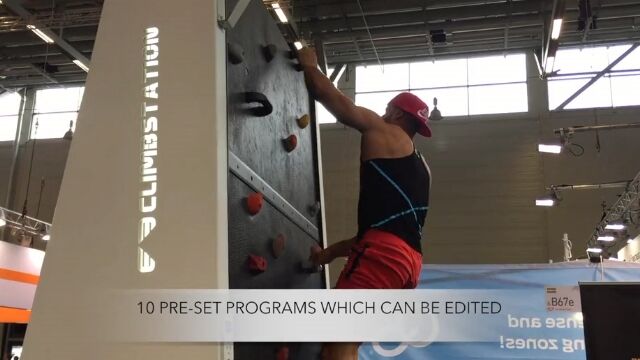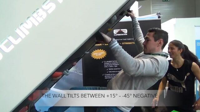 プリセットされた難易度は10段階で、15度からマイナス45度までの傾斜でボルダリングが可能で、登っている最中でもスピードや角度の変更ができる。