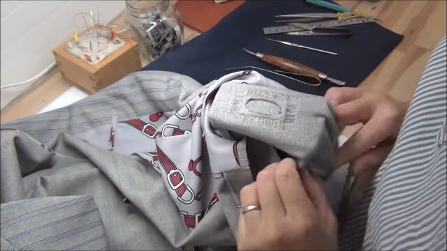 同じ模様の布を使い、周囲にはみ出した糸を一本一本縫い込んでいき、最終的にはつなぎ目が全く分からないレベルに。