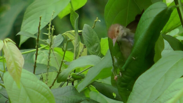 その名の通り、人間のような裁縫をする鳥、サイホウチョウの巣作りの様子。