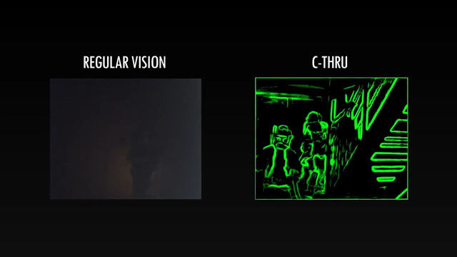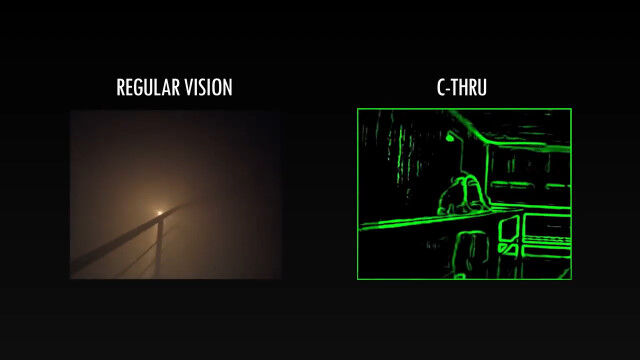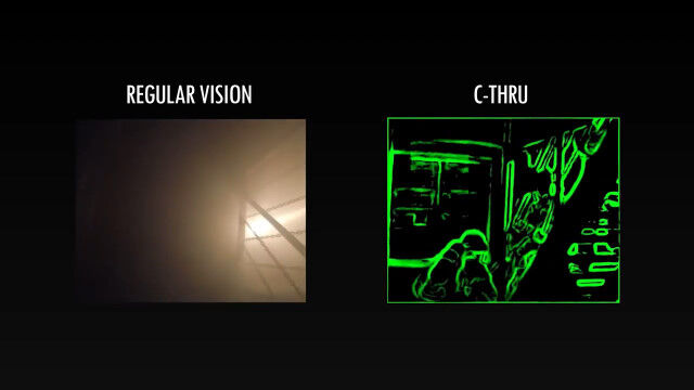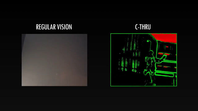 煙が充満した火災現場で、肉眼での視界が不良という場合でも、このハイテク・マスク「C THRU」であればよく見える。