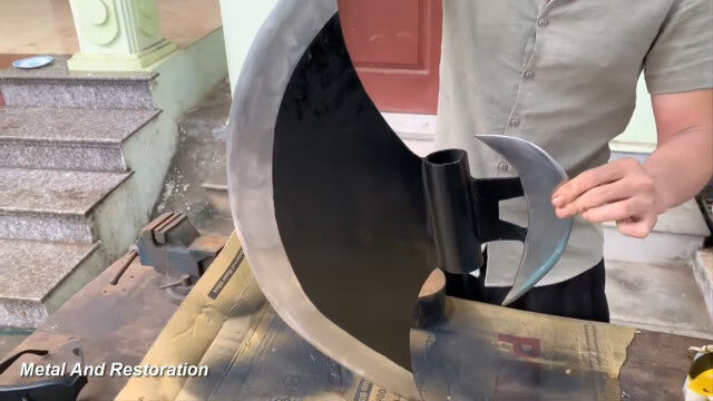 - 錆びついて穴の空いた斧の刃を修復し、磨き上げる早回し映像 $ArticleTagsLoop$>