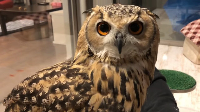 飼い主に甘えるベンガルワシミミズクがすこぶる可愛い