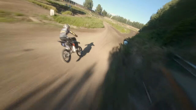 モトクロスと同じスピードで移動しているだけあって、その迫力や臨場感が素晴らしい映像に。