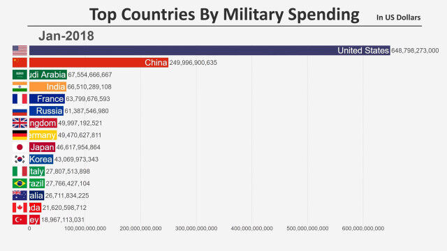 - 1914年から2018年まで、世界各国の軍事費トップ15の変化を視覚化した映像 $ArticleTagsLoop$>