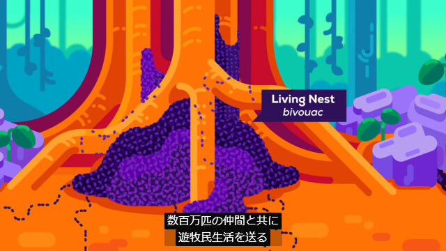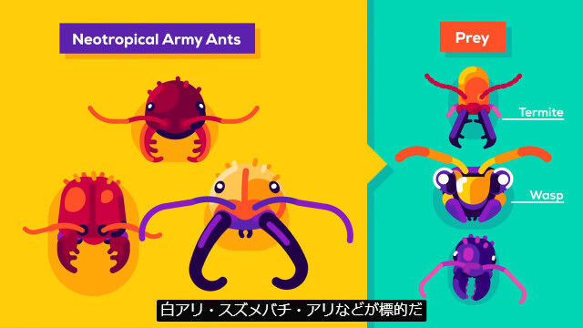 毎日、何十億もの兵士が戦いを繰り広げる壮絶なアリたちの世界の中で、軍隊アリについて解説した映像。