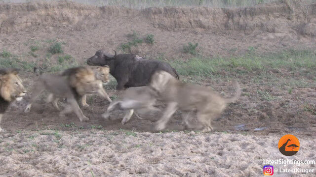 本気を出したバッファローが強すぎる!角で突き上げられたライオンが、回転しながら宙を舞う