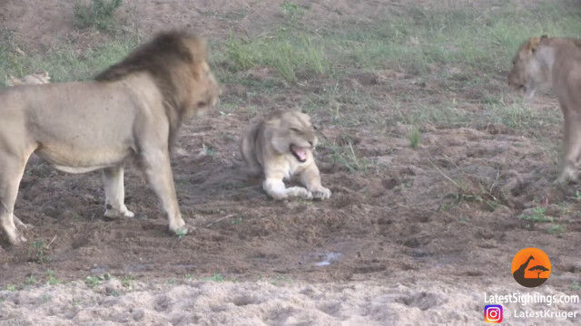 新しく来た1頭は別の群れに所属している雌ライオンである模様。