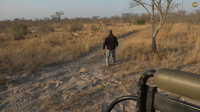 動画のライオンは兄ちゃんが木の横に来たあたりで逃げてるのがいるから、あの木がボーダーラインの目印だったんだと思う
