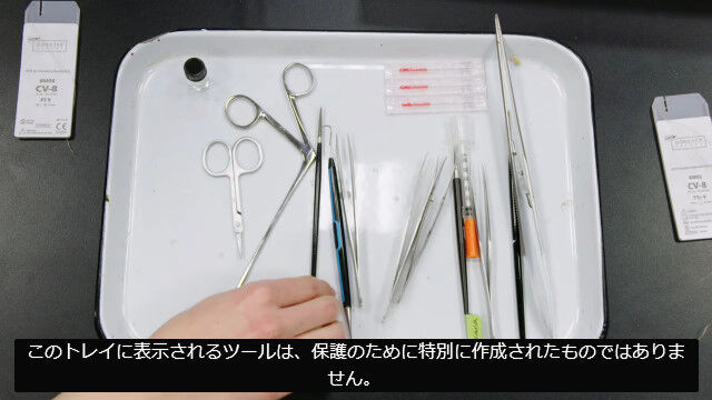 蝶々の破損した羽を修復する外科手術