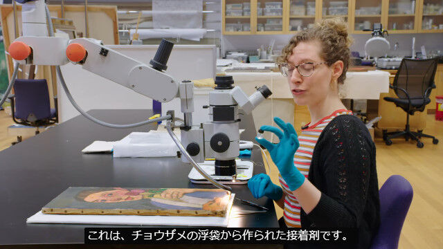 絵画の汚れを取り除き、ダメージを修復する職人さんの作業工程 その2