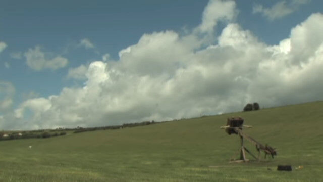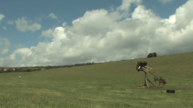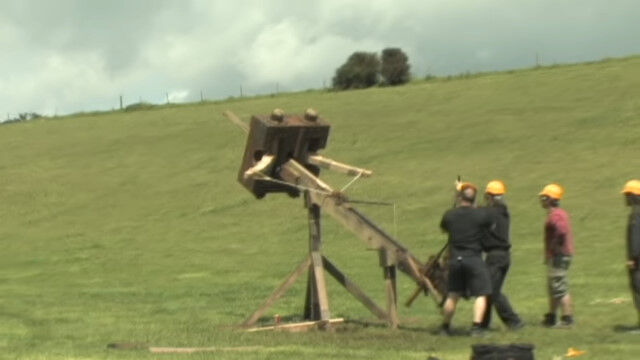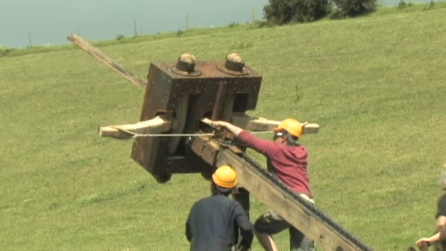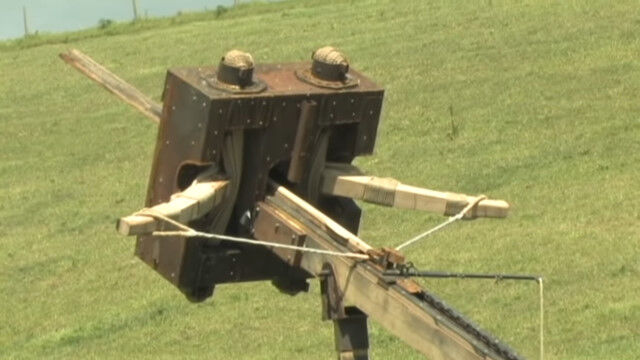 テレビ番組の企画として行われた、古代兵器「バリスタ」の再現および射撃実験。