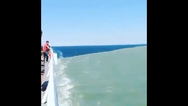 大本はおそらくアラスカ湾の動画で、雪解け水の流れ込んだ川水と海水の境界線。2007年に既に似た写真が出ている様子。