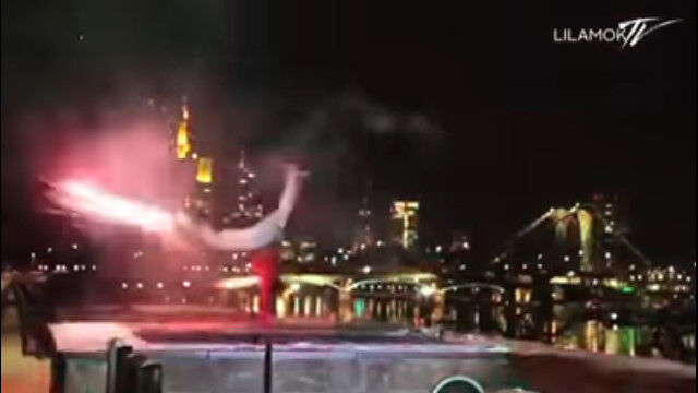 ブレイクダンサーの両足に連発花火を装備させ、点火してブレイクダンス。