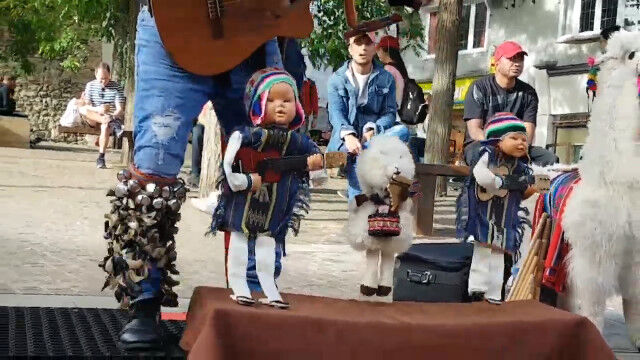 エクアドル北部の街、オタバロで撮影された、ワンマンバンドなストリートパフォーマー。