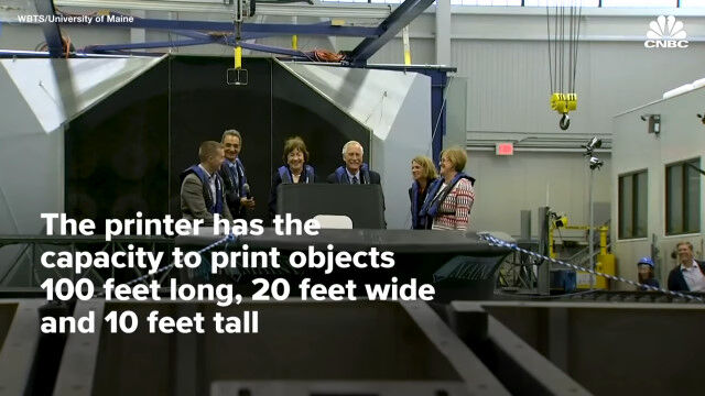 3Dプリンタは最大で長さ100フィート(約30メートル)、幅20フィート(約6メートル)、高さ10フィート(約3メートル)の物を印刷可能。