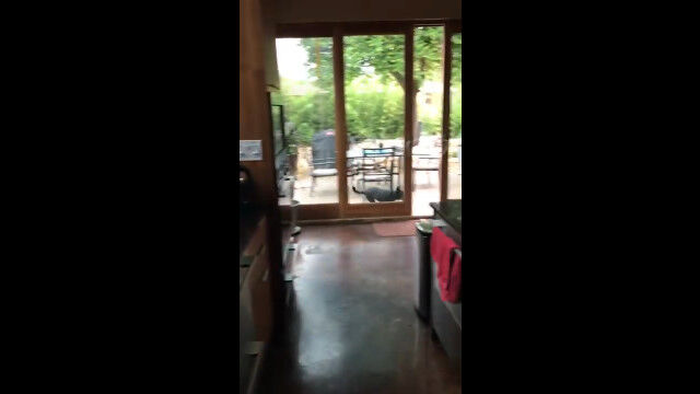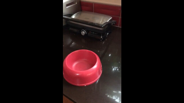 家の中でエサ入れを置くと、遠くでその音を聞きつけて、大急ぎでやってくる食いしん坊な犬。