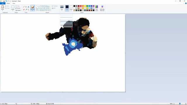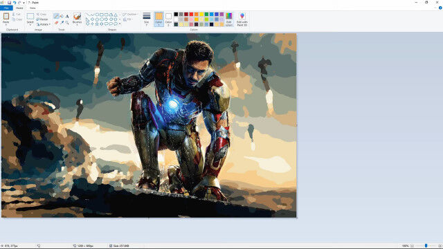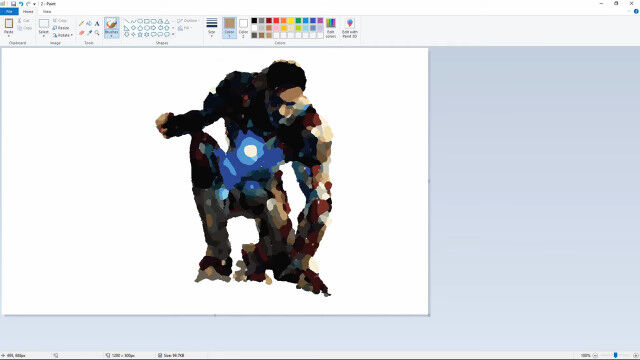 ウィンドウズに付属しているMSペイントを使って、アイアンマンのイラストを描く早回し映像。