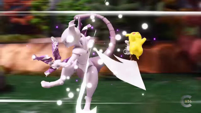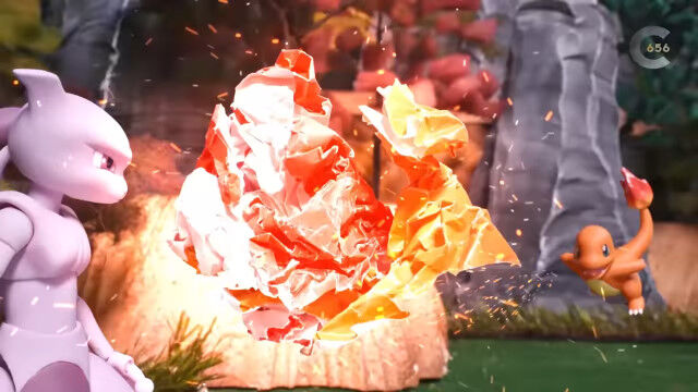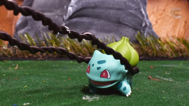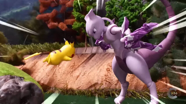 ミュウツーをゲットするために、ピカチュウ、フシギダネ、ヒトカゲ、ゼニガメを連れたサトシが、激しい戦いを繰り広げるコマ撮りアニメーション。