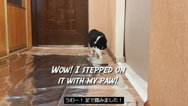 猫の進路にアルミホイルを敷き詰めたらどうなる?反応を見てみた実験映像