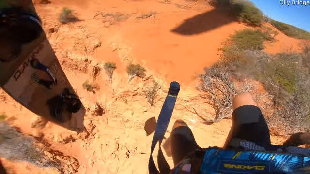 オーストラリア西部のビーチでカイトサーフィンを楽しむ、カイトサーファーのオリー・ブリッジ。