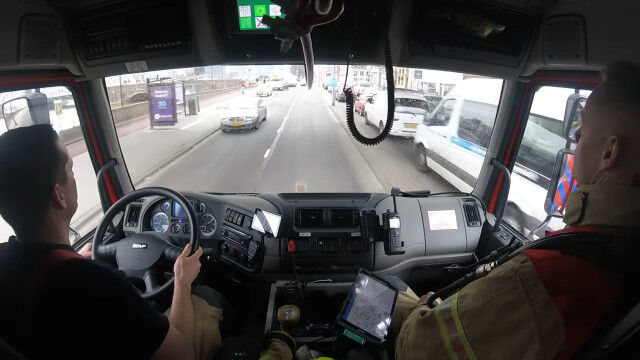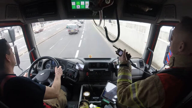 オランダ、ロッテルダムのバーン消防署から出動した消防士たちが、現場に急行する様子をとらえた車載カメラ映像。