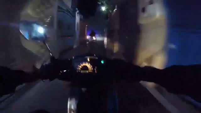 バイク同士でもすれ違えないほどの細い道を、かなりのスピードで走る追走劇がなかなかの迫力。