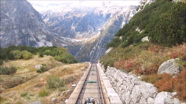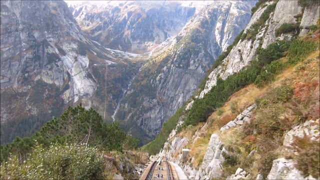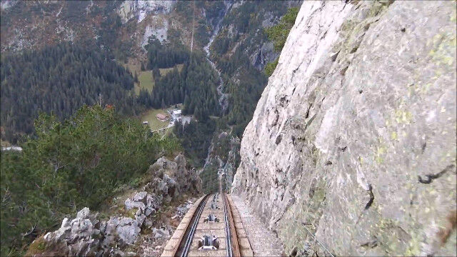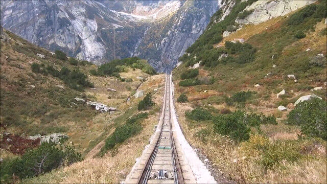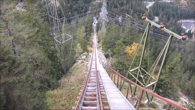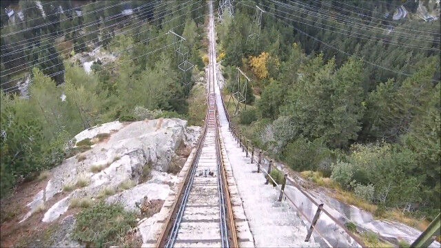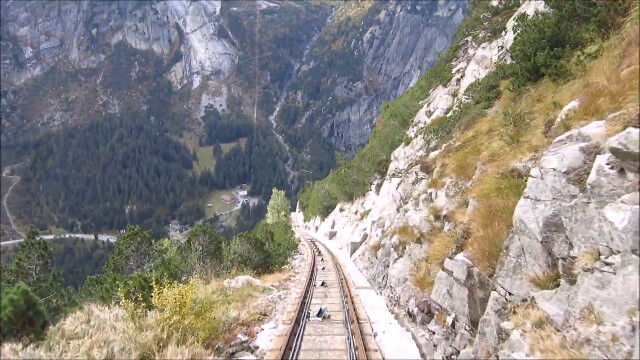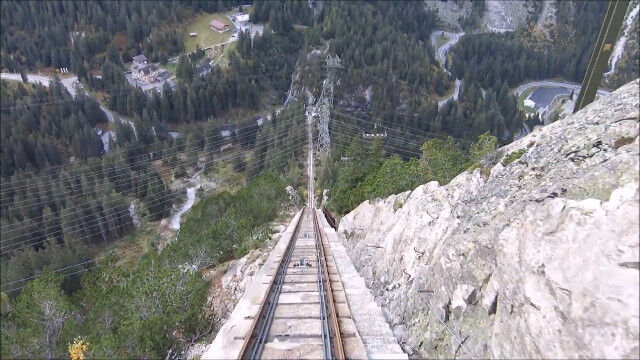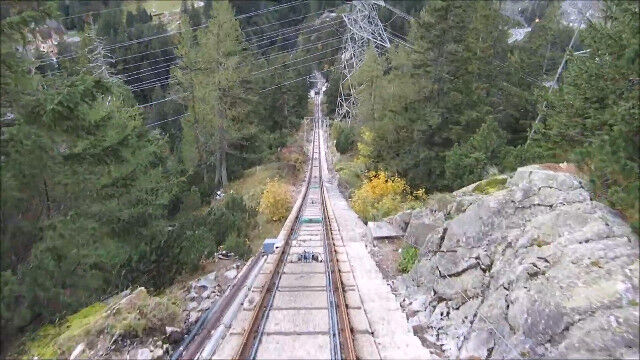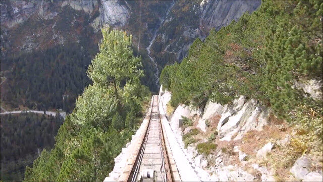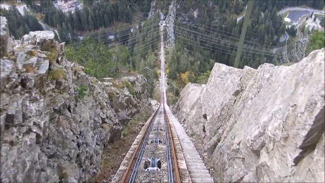 2017年まで、スイスで最も急勾配なケーブルカーであったゲルマーバーンの下り前方を撮影、ちょっと早送りで再生した映像。