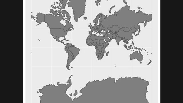 この映像は、メルカトル図法で描かれた世界地図と、各国の面積を正しく調整した世界地図とを比較したもの。