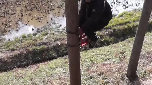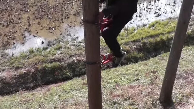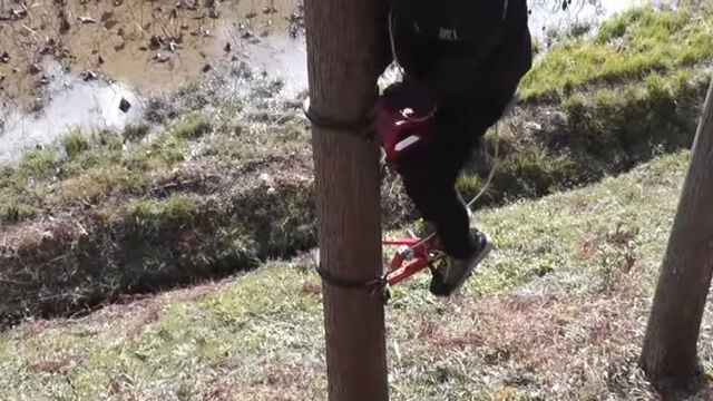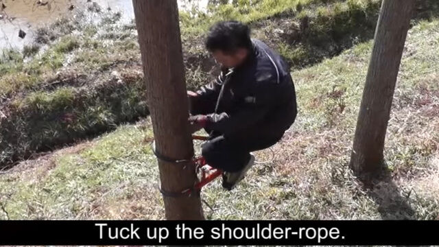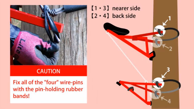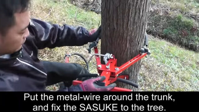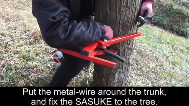 シャクトリムシみたいに簡単に木を登り降りできる道具、サスケ(木登り器 与作)