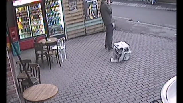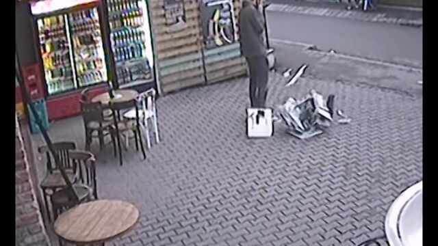 空から降ってきたプリンターが男性の真横に落下。恐ろしすぎる、九死に一生を得た瞬間