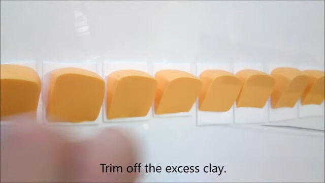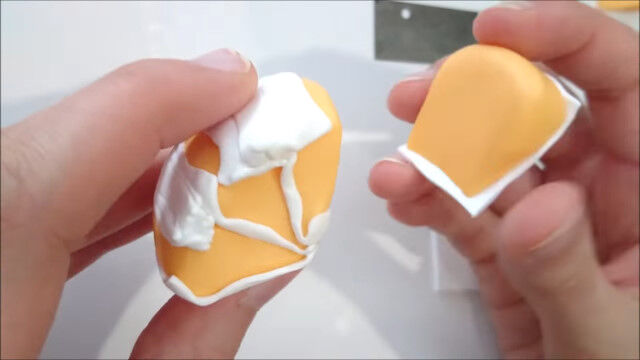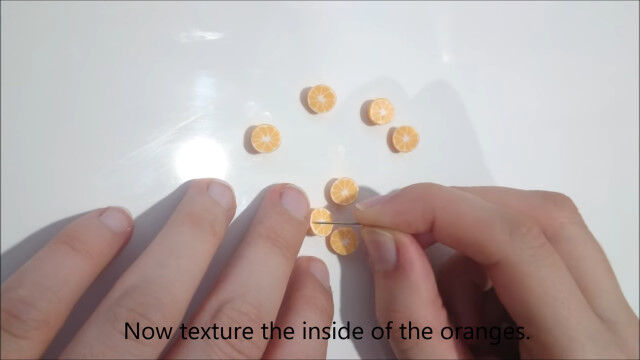 始めは大きいオレンジを作るような感じで樹脂粘土を組み合わせ、細長く転がして小さくカットし、丸めれば小さなオレンジに。