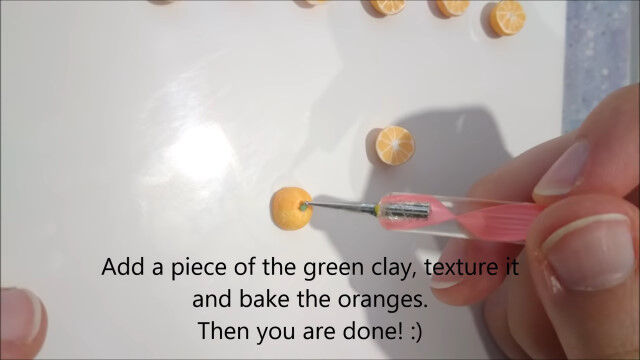 樹脂粘土を使って作れる、ミニチュアオレンジの作り方。