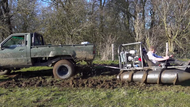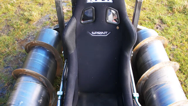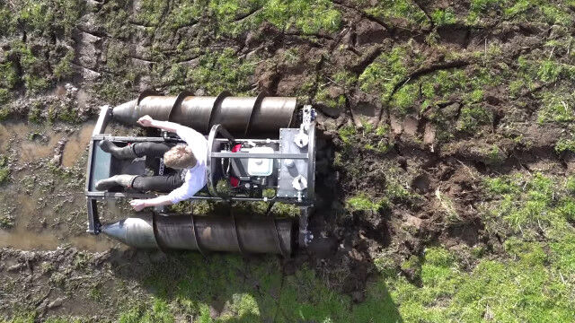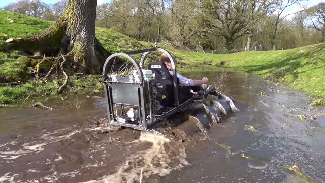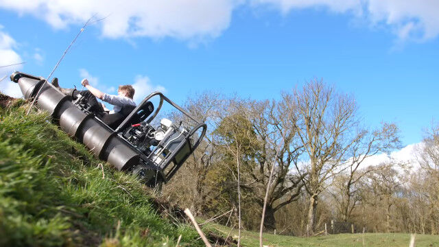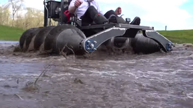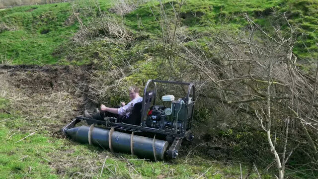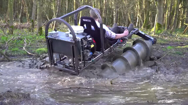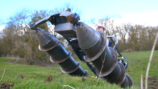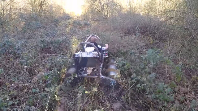 発明が大好きで技術力を持つだけでなく、行動力もあふれるコリン・ファーズさんが自作した、2本のドリルで進む1人乗りドリルタンク。