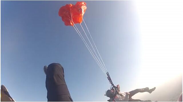 高度10,000フィート(約3,000メートル)からのスカイダイビングで、ダイバー同士が空中で激しく衝突。