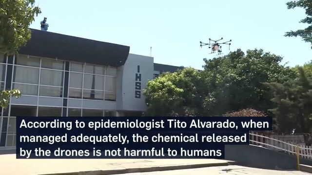 疫学者のティト・アルバラードによると、ドローンから散布された消毒剤は人体に有害ではないとのこと。