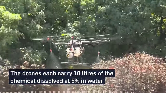 中米、ホンジュラス共和国の首都、テグシガルパで新型コロナウイルス対策として使われているのが、消毒薬を散布する大型ドローン。