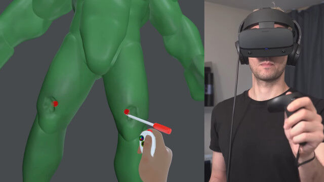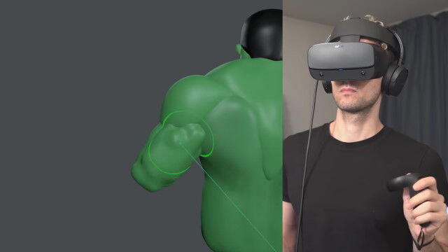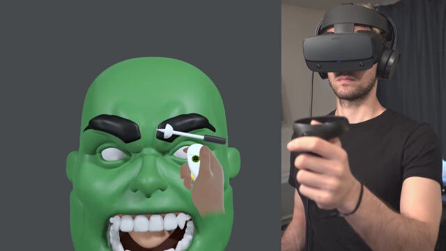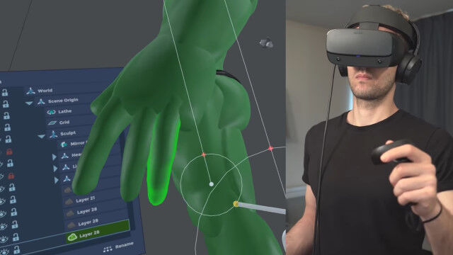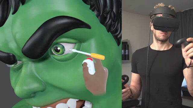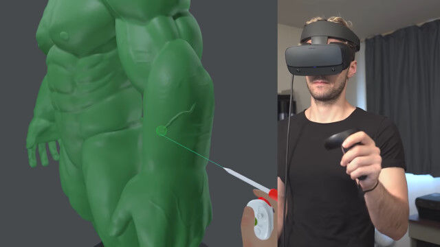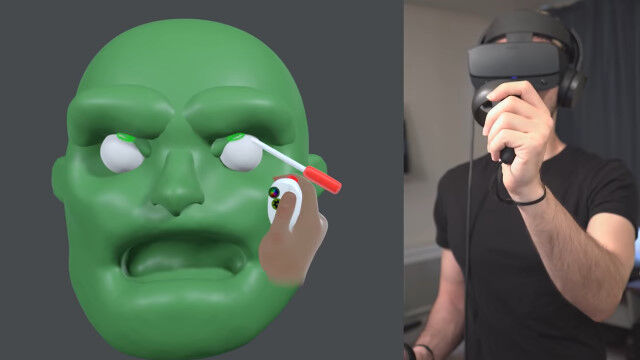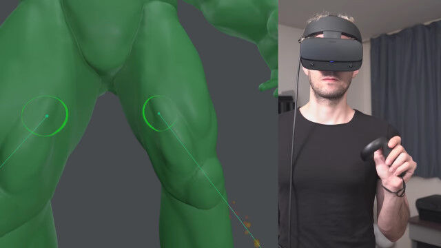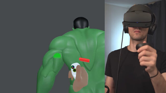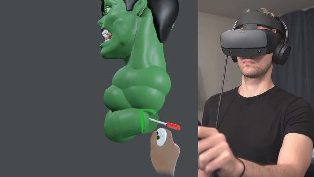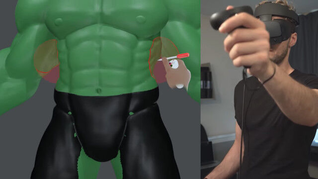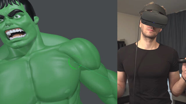VRヘッドセットを装着し、仮想空間内で立体物を造形できる、Oculus Mediumを使ったハルクのフィギュア作り。