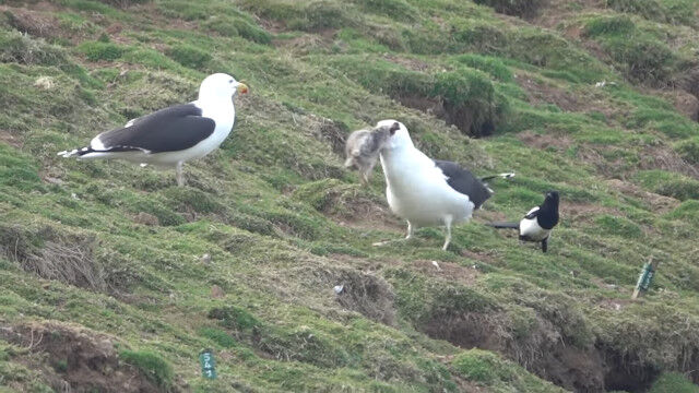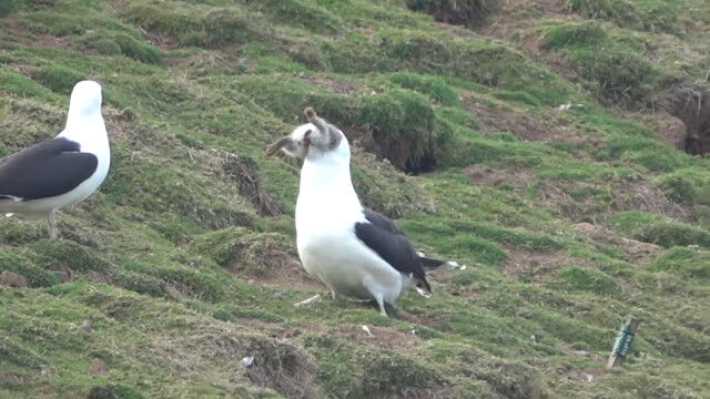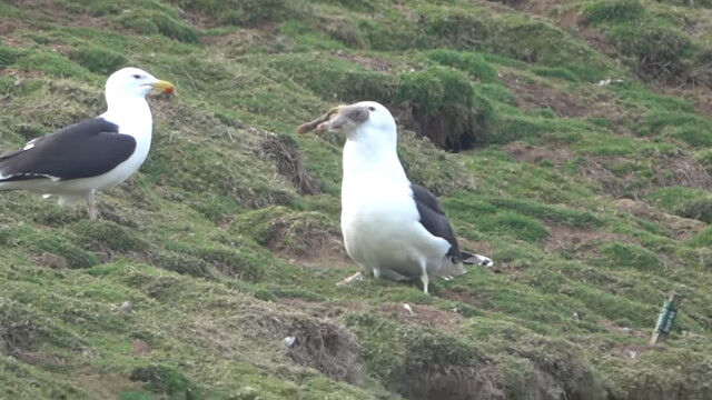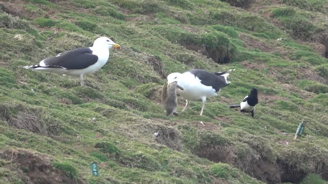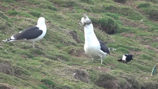 【閲覧注意】貪欲なカモメ、ウサギを巣穴から引きずり出し、頭から丸呑みにする