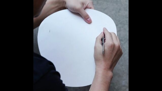 テンプレートに合わせて顔を覆えるサイズに丸く切ったら、細い切れ込みを2箇所入れ、メガネを切れ目に差し込んで、メガネをかけるだけ。
