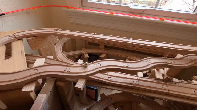 #9日間かけて全長165メートル。屋内に張り巡らせたパチンコ玉のジェットコ